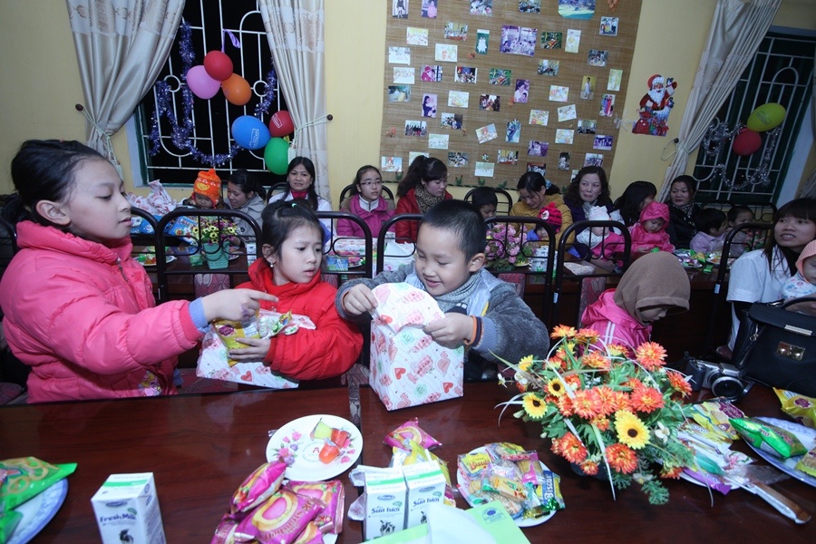 | Nhiều em nhỏ mồ côi, suy dinh dưỡng đã nhận được phần quà khích lệ. Trung tâm có 27 trẻ từ 2 tháng đến 6 tuổi. |