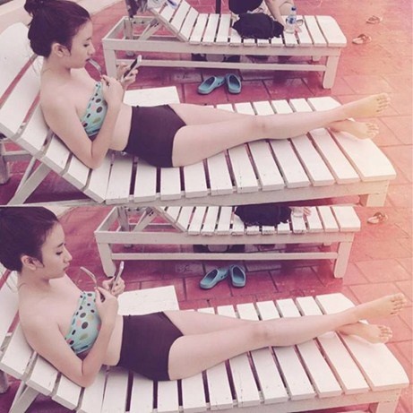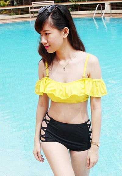 | Để tiết kiệm, bạn trẻ có thể mua một chiếc quần bơi bikini cạp cao màu đen để kết hợp với tất cả các kiểu dáng ở phần trên giống như hot girl Quỳnh Anh Shyn. Chưa kể, quần màu đen sẽ giúp cho phần hông, bụng nhìn thon thả hơn rất nhiều. |