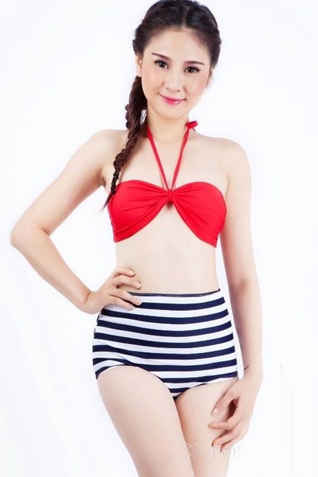 | Sọc cũng là "mốt" trong năm nay, vậy thì ngại ngùng gì không thử bikini vintage sọc để thêm phần tươi tắn, đáng yêu giữa nắng hè. |