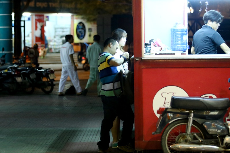 | Sau khi xem phim xong, Đinh Tiến Đạt dẫn bạn gái đi mua bánh. |