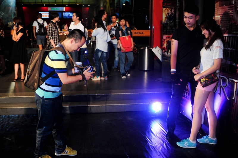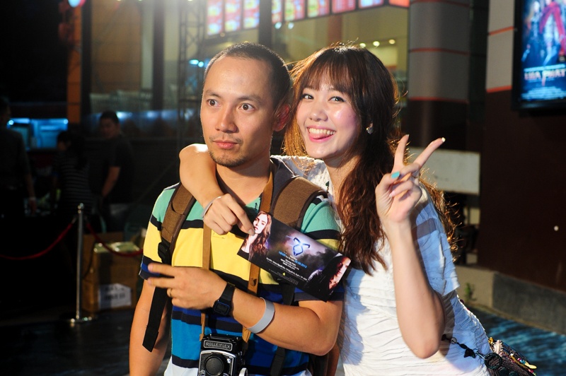 | Họ chọn trang phục rất giản dị và trẻ trung, như những khán giả đi xem phim bình thường. |