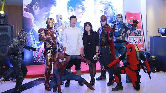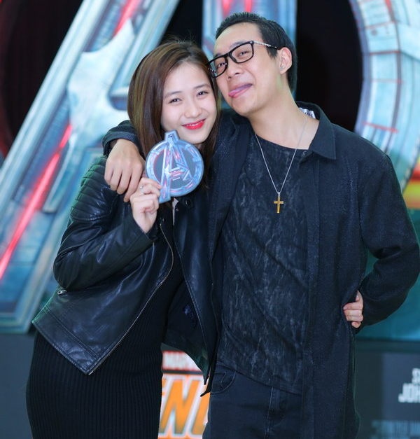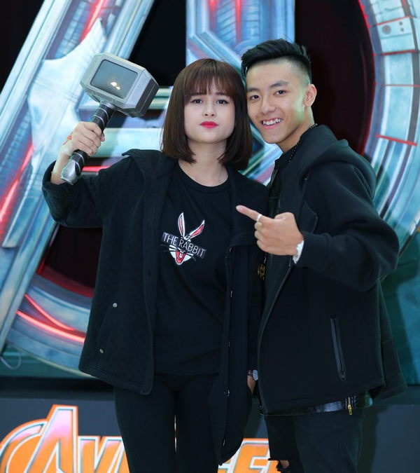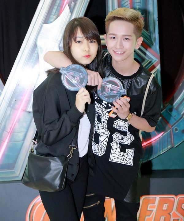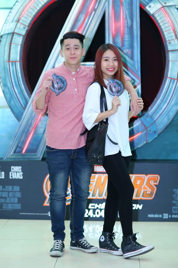 | Huy Me cùng bạn gái Quỳnh Giang có mặt sớm, chụp ảnh cùng dàn "siêu anh hùng". |