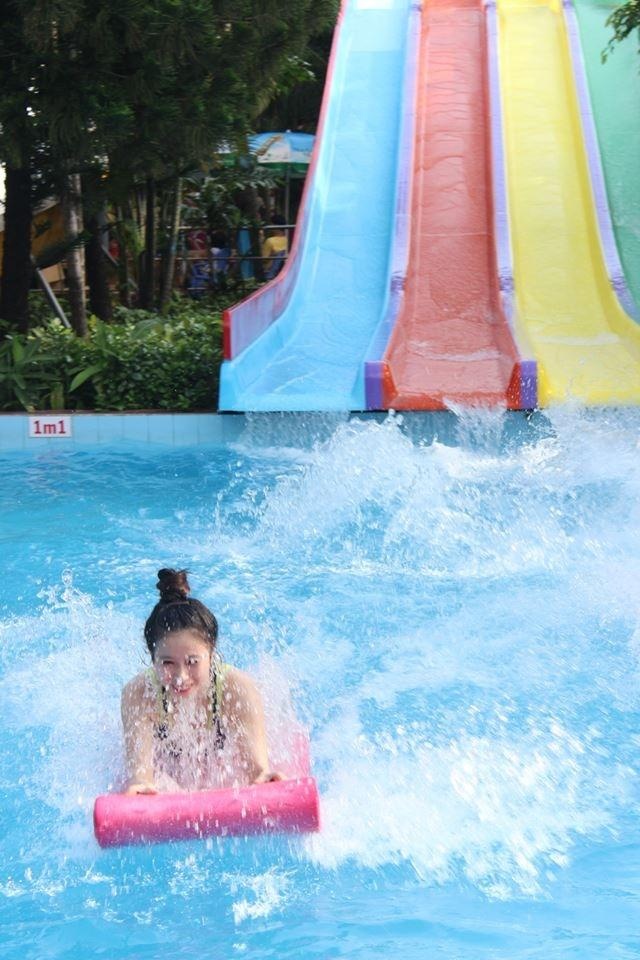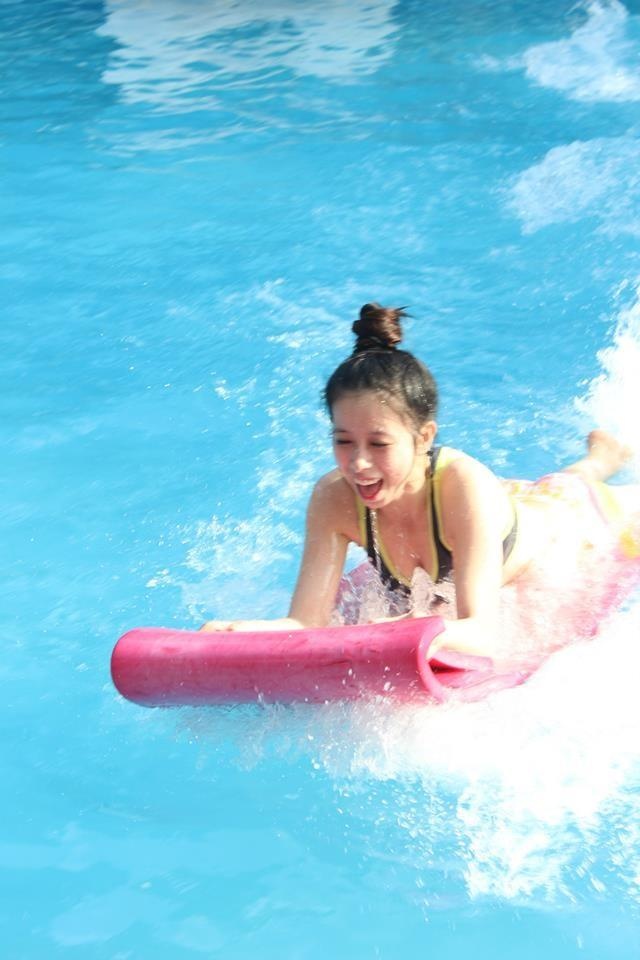 | Sau những ngày tháng luyện tập và thi đấu căng thẳng, hoa khôi làng võ vừa tự thưởng cho mình một ngày vui chơi thư giãn tại Công viên nước Đầm Sen. |