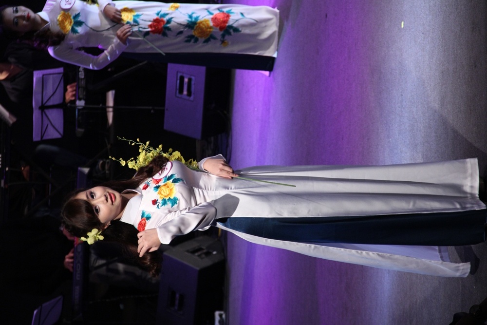 | Thướt tha trong tà áo dài, Phạm Thị Duyên cũng là một trong 5 thí sinh xuất sắc nhất lọt vào top 5 của cuộc thi. |