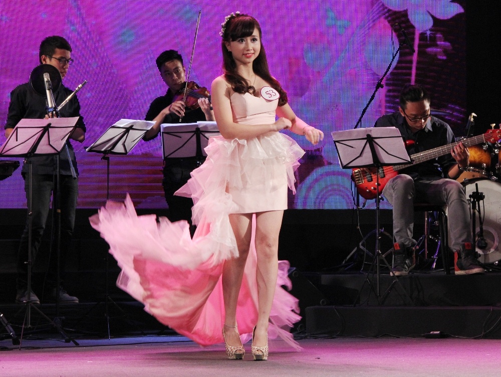 | Phần trình diễn trang phục dạ hội của Duyên nhận được sự cổ vũ của đông đảo khán giả. |