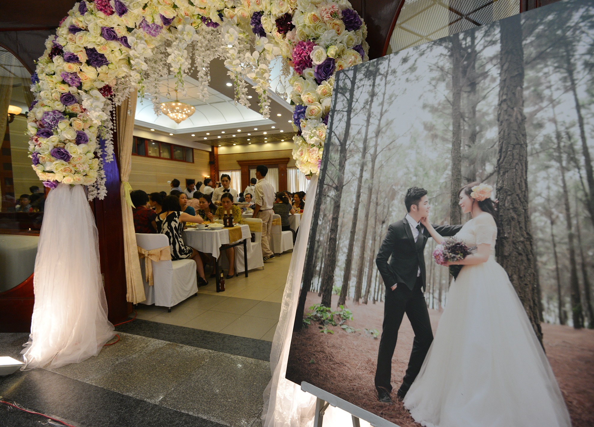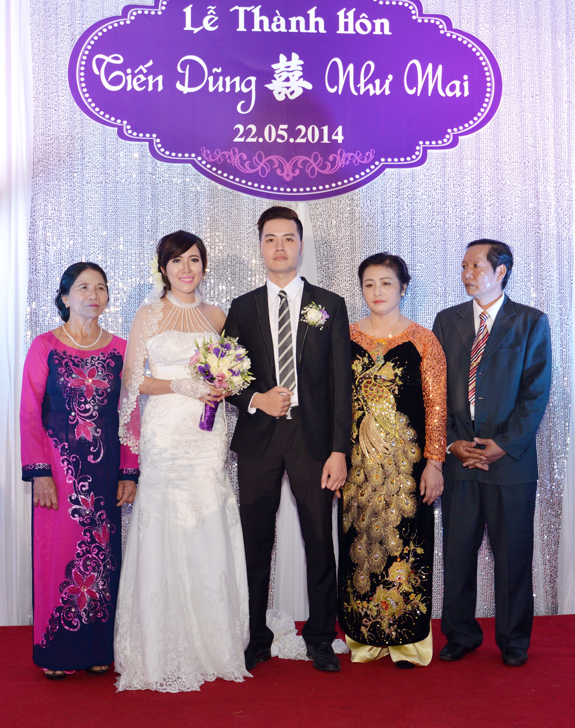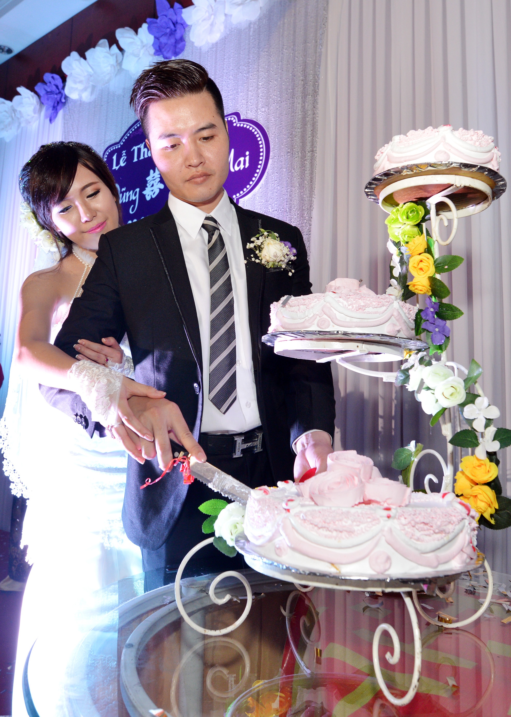 | Đám cưới của Mai Thỏ và chú rể Tiến Dũng được tổ chức ngày 22/5 tại một khách sạn trên đường Hùng Vương, Hà Nội. |