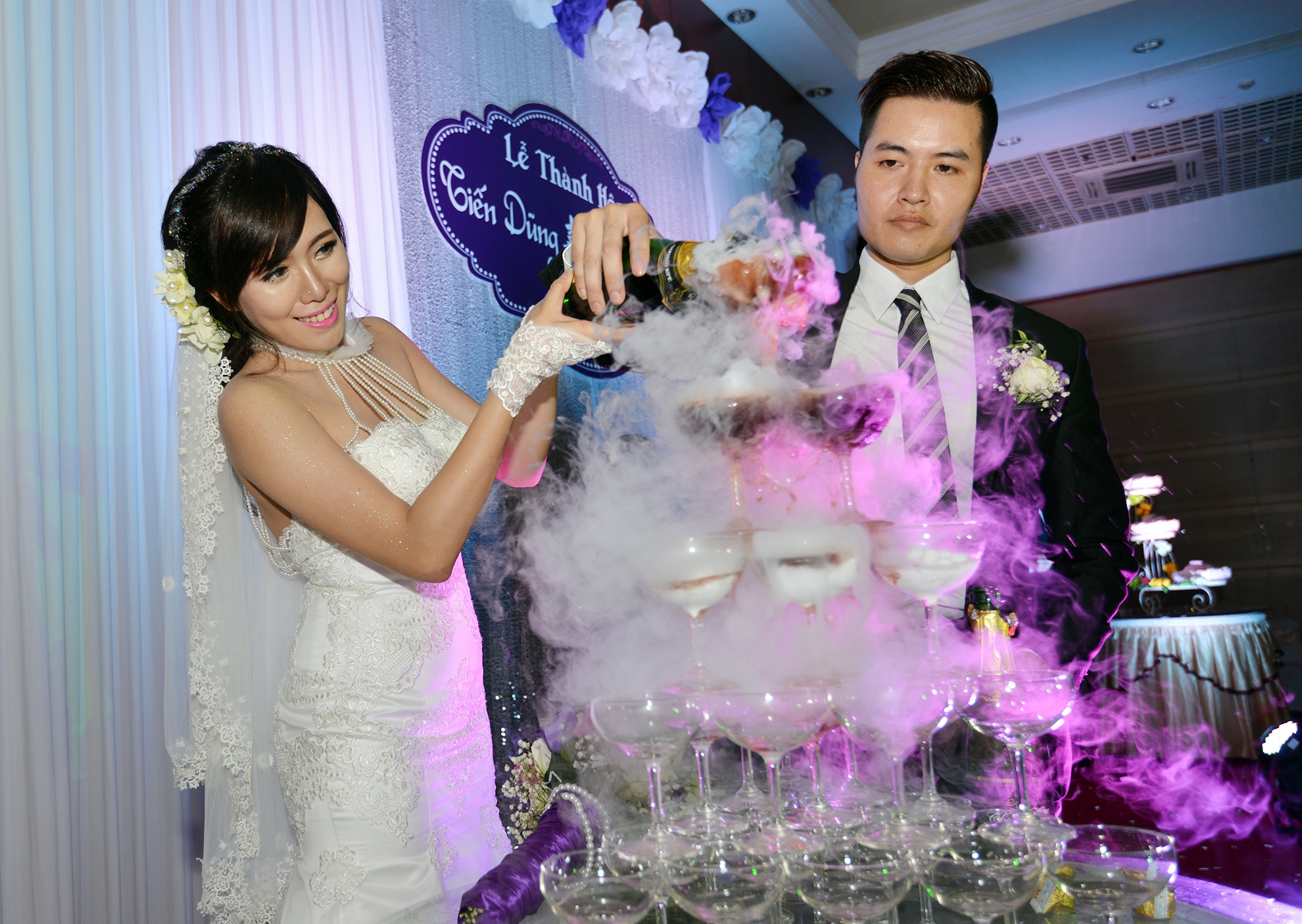Hot girl và chàng trai đam mê xe phân khối lớn đã tổ chức lễ cưới vào trưa 22/5. Chiều nay, lễ cưới của cô tiếp tục diễn ra tại một khách sạn khác.
