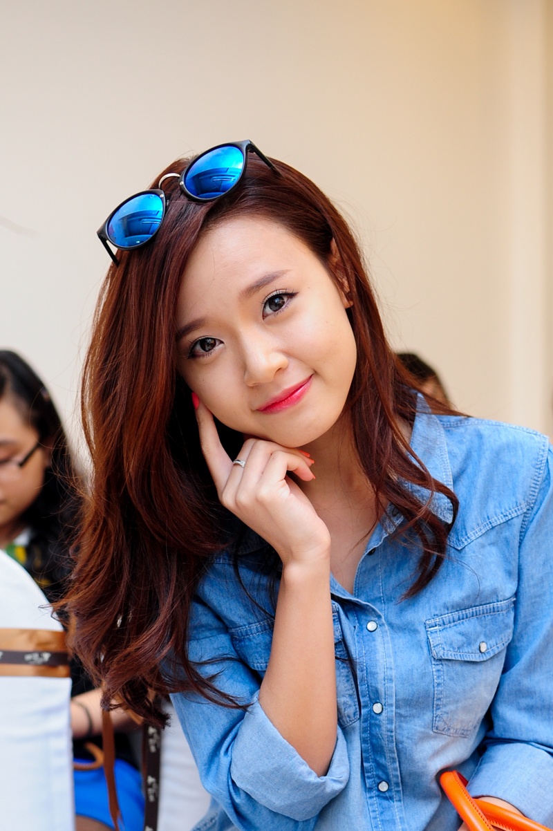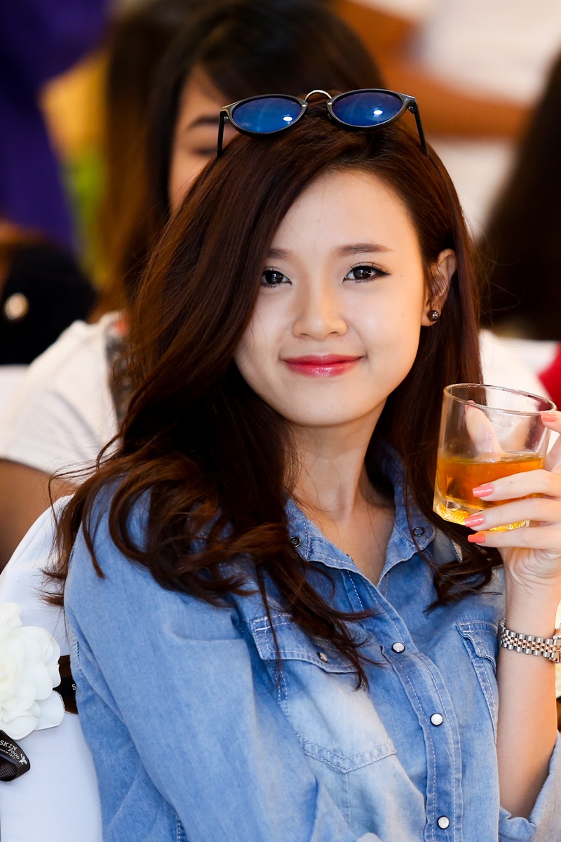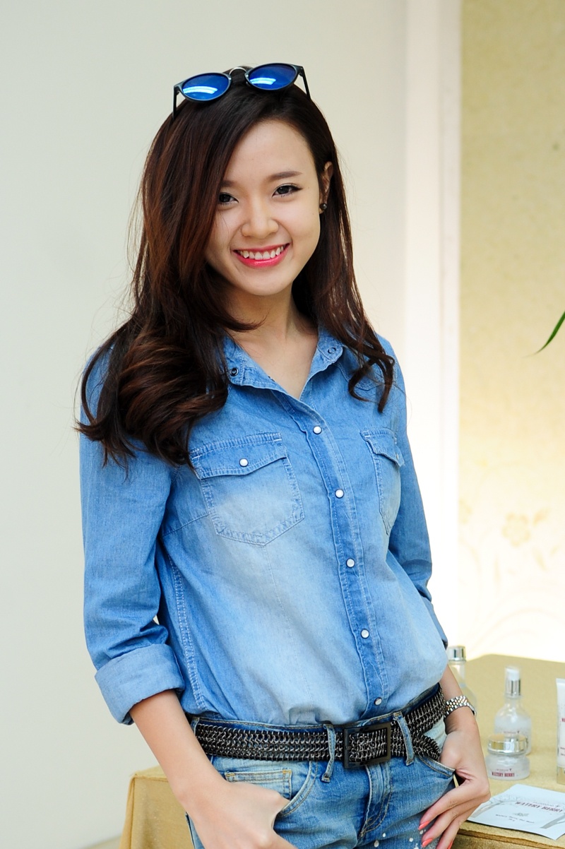 | Nữ diễn viên ăn mặc trẻ trung, bụi phủi với cây jeans xanh dương. Phong cách thời trang này giúp hot girl Sài thành ghi điểm, bởi trước đó, cô thường xuyên bị nhận xét là ăn mặc sến sẩm. |