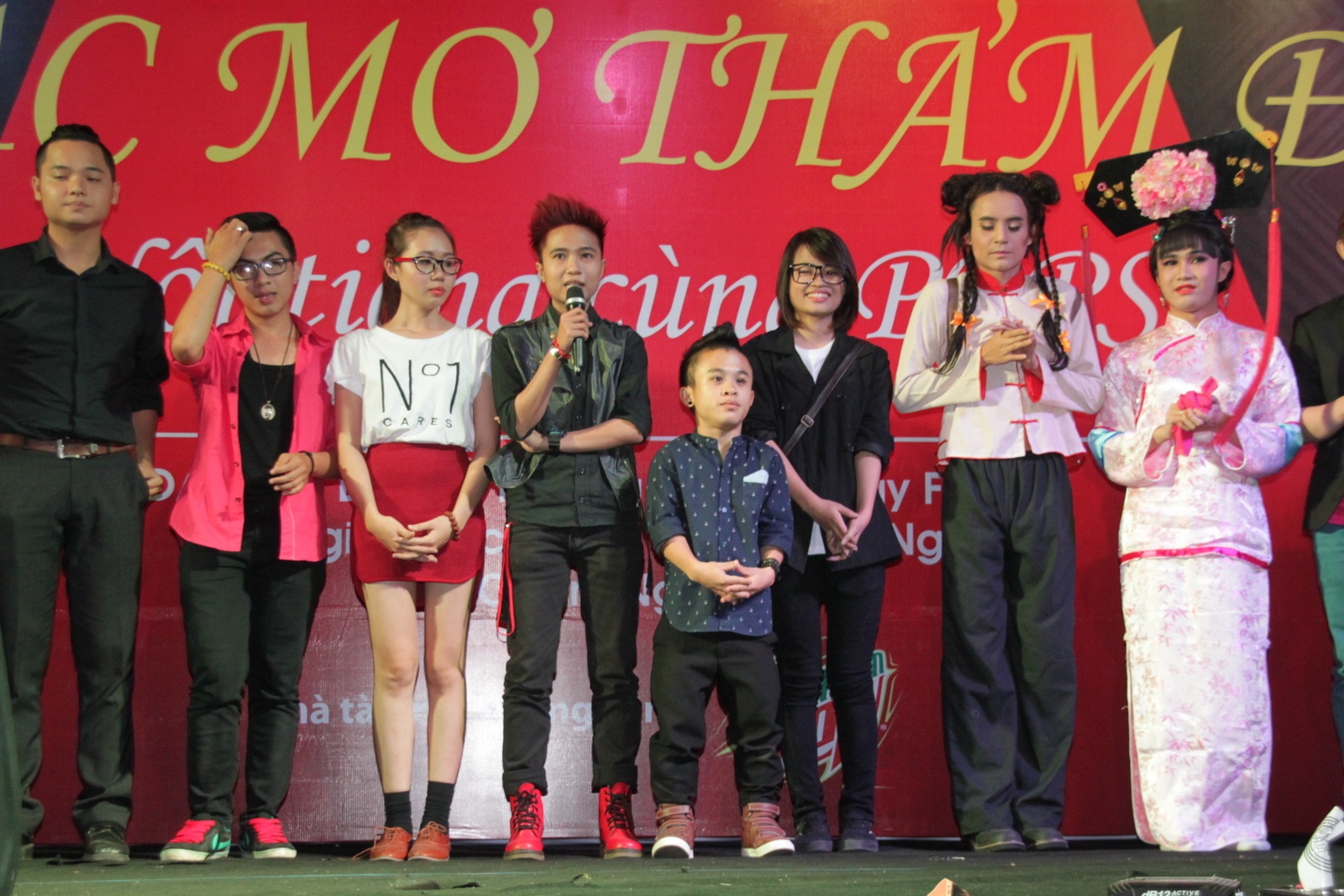 | Sau khi chào khán giả, mọi người cùng hát vang ca khúc Con bướm xuân. |