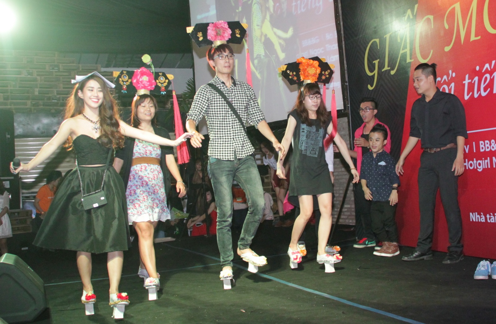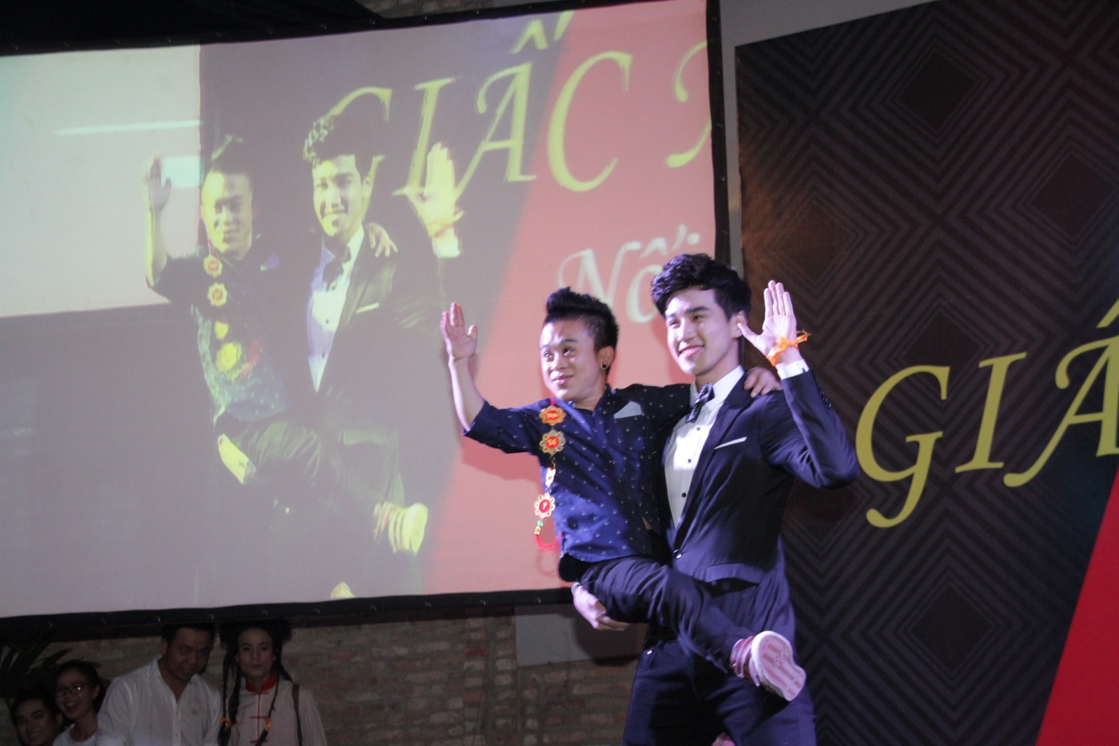 | Hot girl Lâm Á Hân (nhóm BB&BG) cùng một thành viên nhóm Bộ ba My Best Gay Friends. |