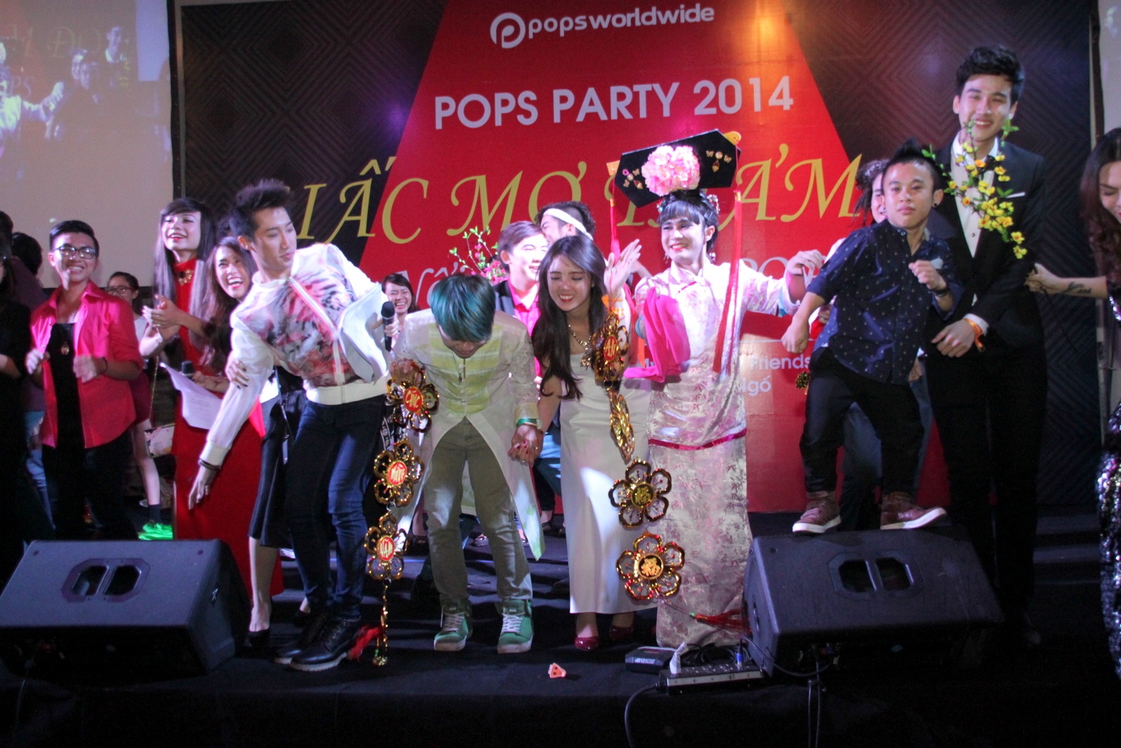 | Các thành viên khác mỗi người một kiểu nhảy múa nhắng nhít trên sân khấu. |