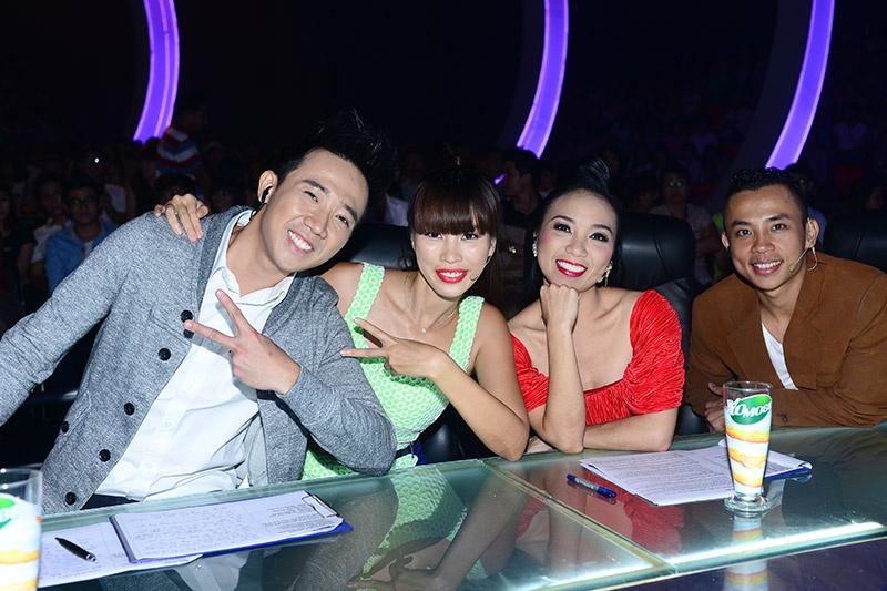 Trấn Thành cũng nhí nhố với 3 giám khảo. |