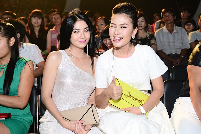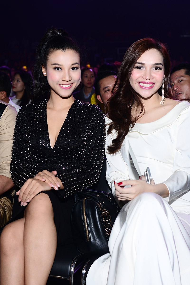 Á hậu Phụ nữ Việt Nam qua ảnh tươi tắn trên hàng ghế khán giả. |