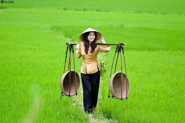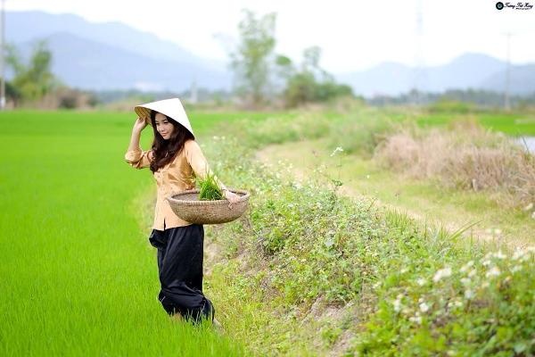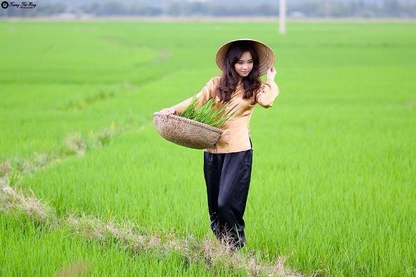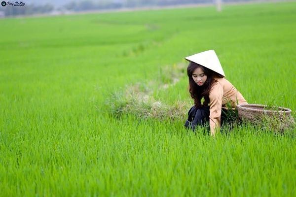 | Vẻ đẹp mộc mạc, chân lấm tay bùn của thiếu nữ thôn quê đã tạo nên một phong cách rất riêng cho bộ ảnh Đi cấy. |
