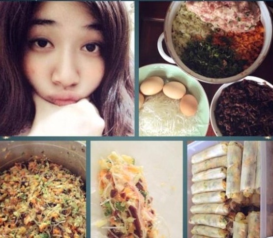 | Hot girl Hà Min khoe khả năng khéo léo: “Ở nhà một mình với mâm cơm cúng tất niên và 50 cái nem. Chuyện nhỏ nha, gái đảm đủ tiêu chuẩn để đi lấy chồng rồi”. |