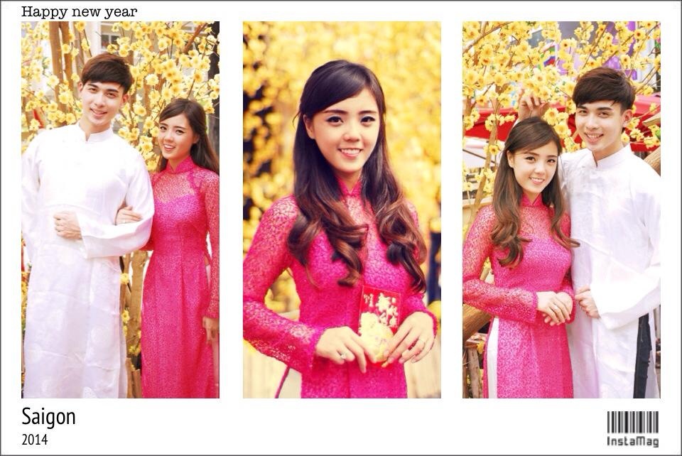 | Á Hân Lâm - cô gái xinh đẹp nhóm hài BB&BG khoe hình ảnh mặc áo dài truyền thống cùng Nguyễn Minh Tú trước thềm năm mới. |