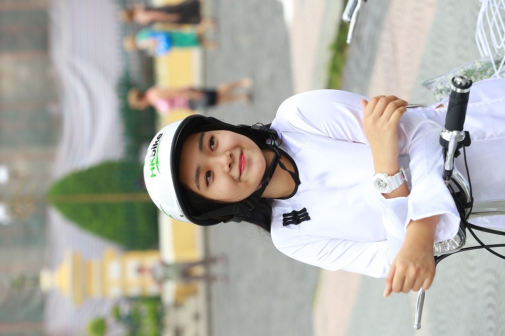 | Hiện Tam Triều Dâng đang là học sinh lớp 11, nên áo dài vẫn là trang phục thân thuộc của cô bạn. |