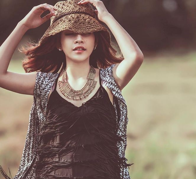 Thời gian gần đây, Khả Ngân rất chăm chỉ chia sẻ hình ảnh lên Fanpage. Cô cũng chịu khó cập nhật những xu hướng thời trang mới, mũ tai bèo là lựa chọn không thể bỏ qua của hot girl trong hè này. Ảnh: Facebook.