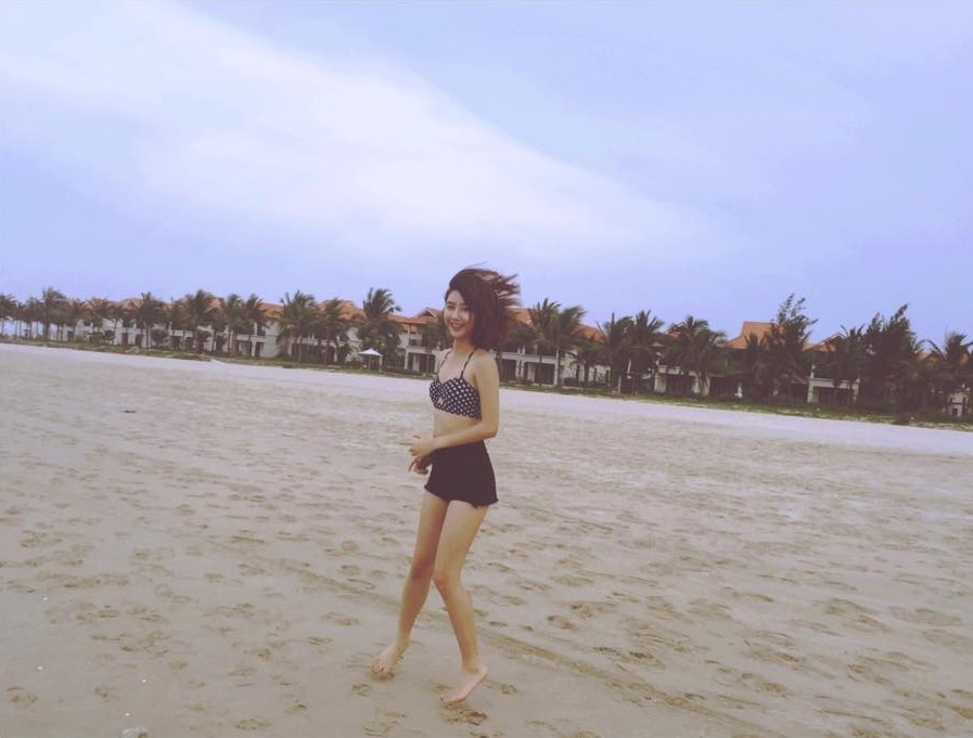 | Quỳnh Anh diện bikini khoe thân hình săn chắc và vòng eo con kiến trên bãi biển. |