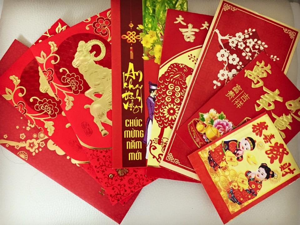 | Ngày mùng 2 Tết, Hạnh Sino khoe các phong bao lì xì cô nhận được. |