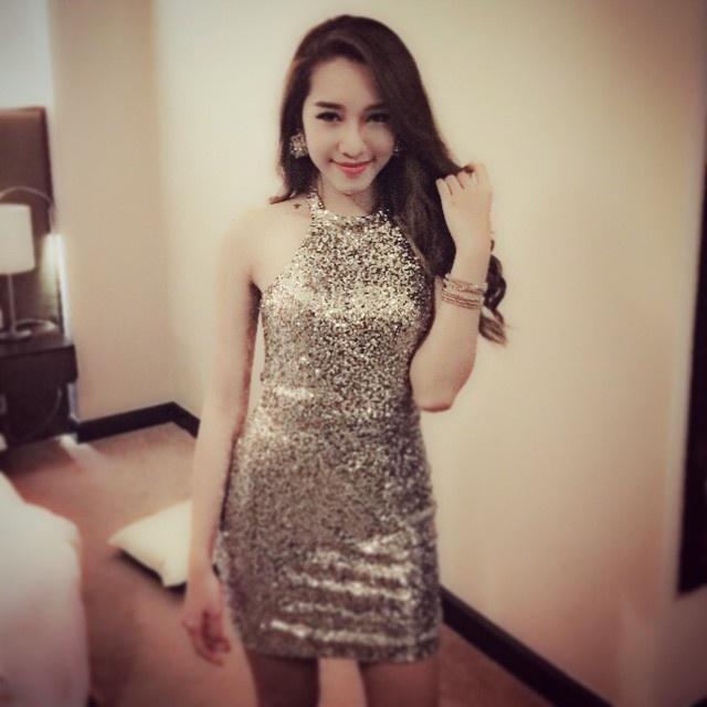 | Trong khi đó, vào mùng 2 Tết, hot girl cá tính với chiếc váy được đính hạt lấp lánh. |