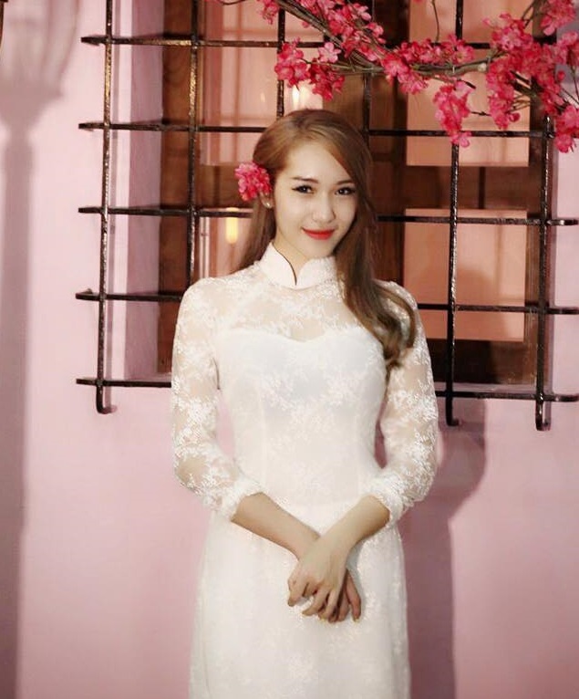 | Emily dịu dàng với áo dài truyền thống trong ngày Tết. Bức ảnh hút hơn 8.000 lượt nhấn yêu thích của dân mạng. |