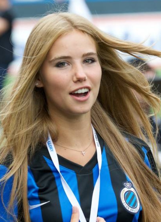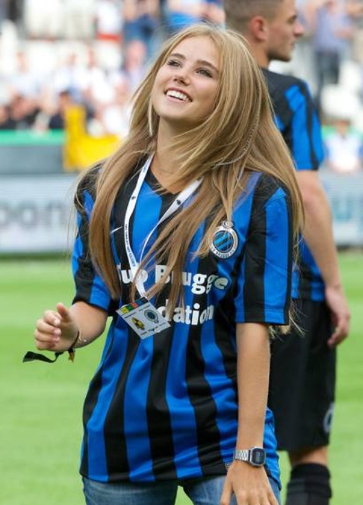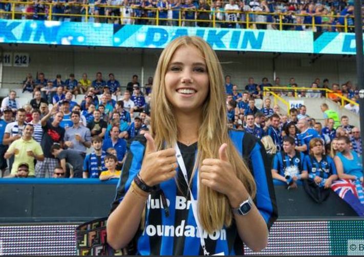 | Hot girl 17 tuổi được người hâm mộ trên sân chào đón nồng nhiệt. Axelle Despiegelaere giản dị trong bộ áo đấu của đội chủ nhà Brugge. |