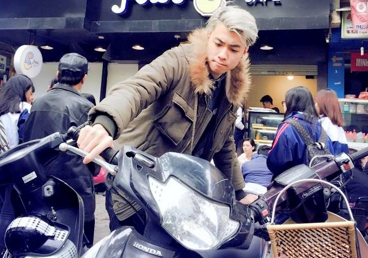 | Vương Anh Ole vào vai một anh chàng trông xe điển trai. Khá nhiều bạn trẻ tỏ ra thích thú với hình ảnh này của chàng hot boy. |