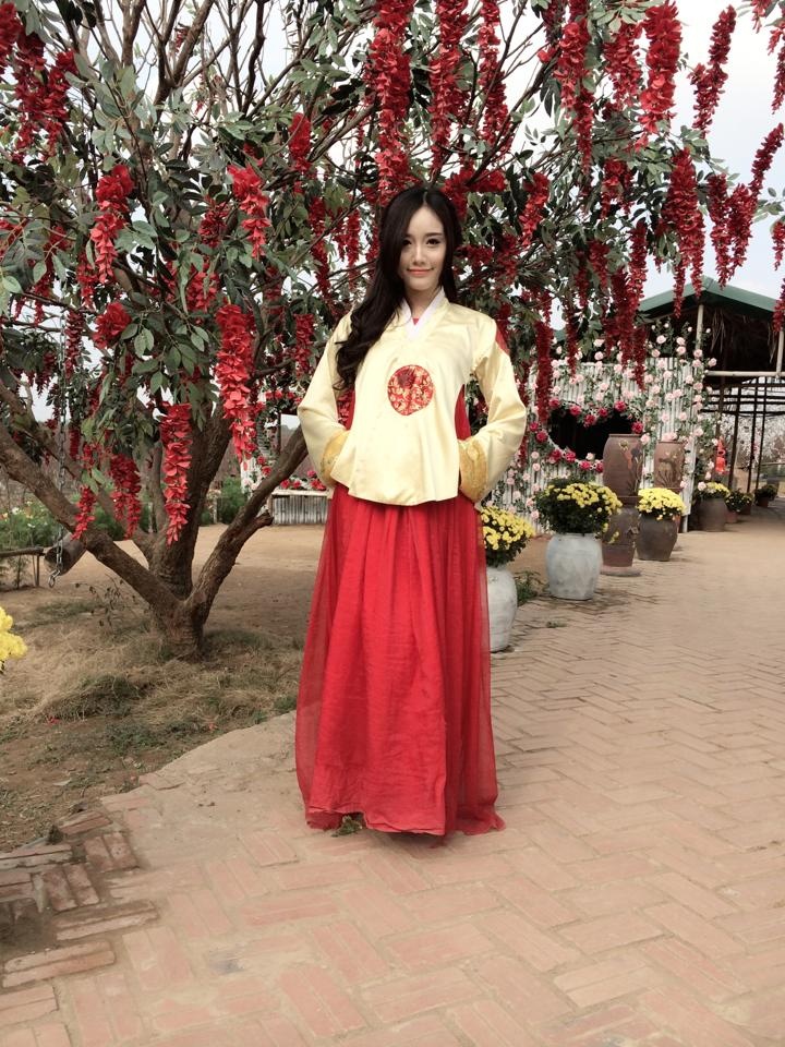 | Hot girl Ngân Búng (Trương Kim Ngân) xuất hiện trong trang phục cổ truyền của Hàn Quốc. Không chỉ xinh đẹp, Kim Ngân còn là một sinh viên có nhiều thành tích tốt trong học tập và công tác Đoàn thể của đại học Ngoại thương. |