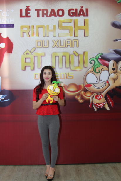 Nhiều bạn trẻ bất ngờ khi bắt gặp hotgirl Bánh tráng trộn trong buổi trao giải chương trình “Rinh SH - Du xuân Ất Mùi” của cổng game Củ Hành Play.
