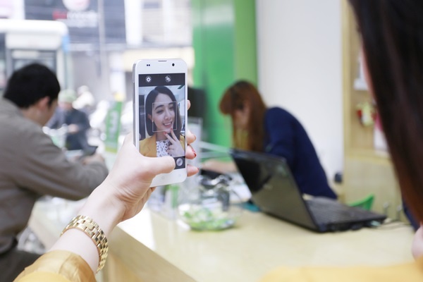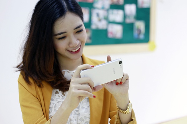 | Hà Min tạo dáng kute chụp “tự sướng” với Revo LEAD8. |