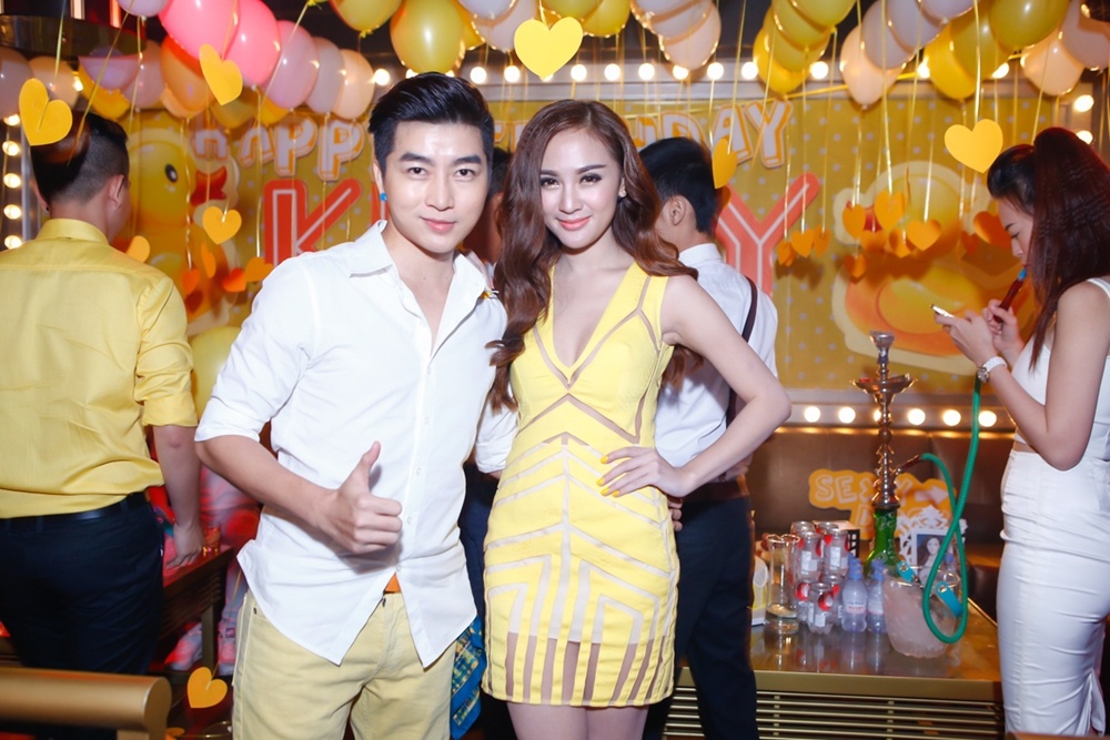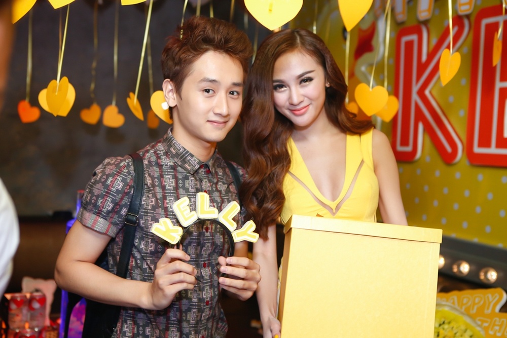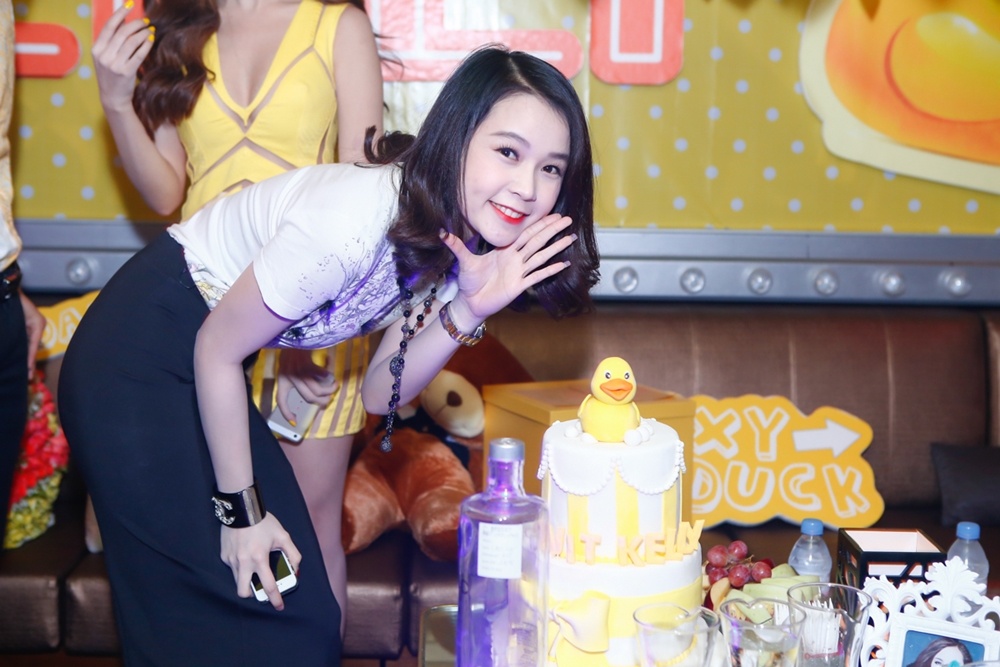 | Tối 13/9, Kelly đã tổ chức tiệc sinh nhật mừng tuổi 25 tại TP.HCM. Kelly có biệt danh là Vịt nên tiệc trang trí của nàng hot girl lấy tông vàng làm chủ đạo. |