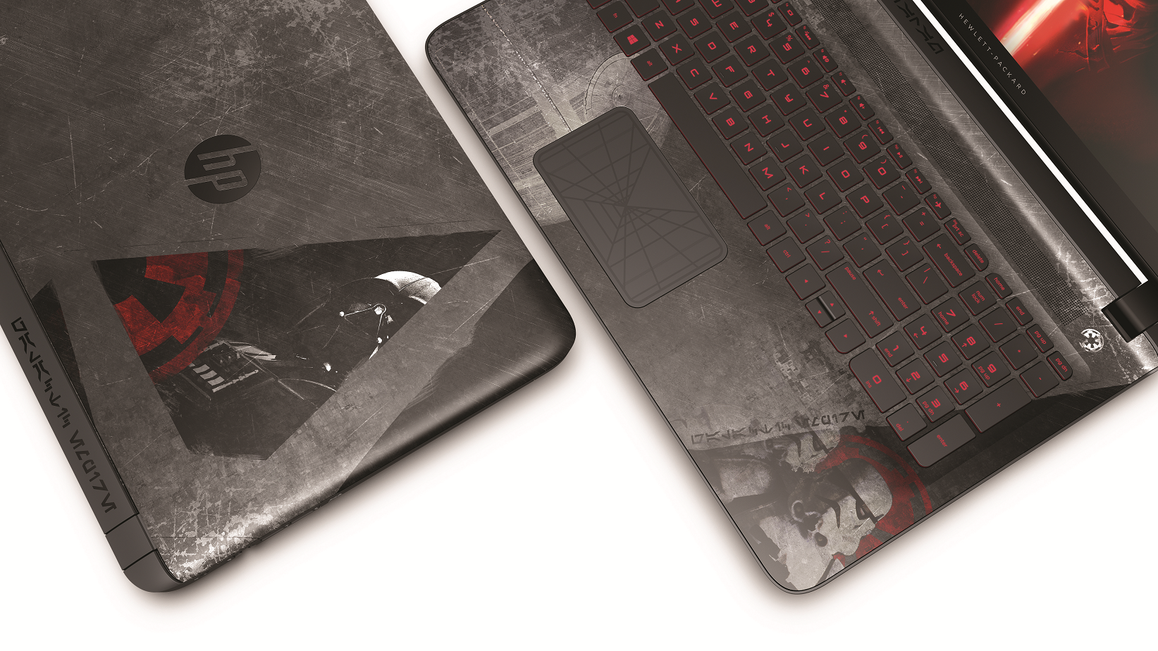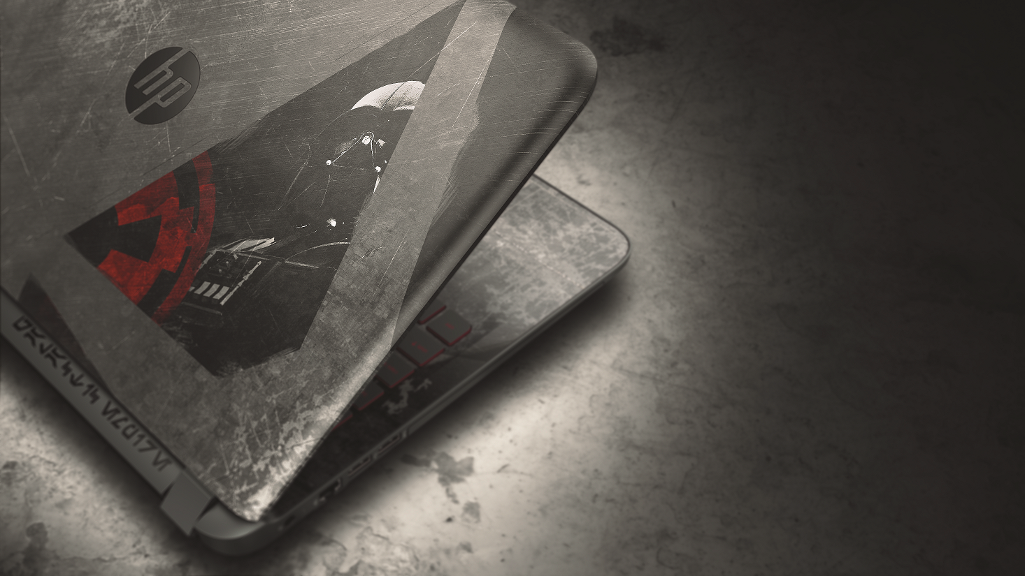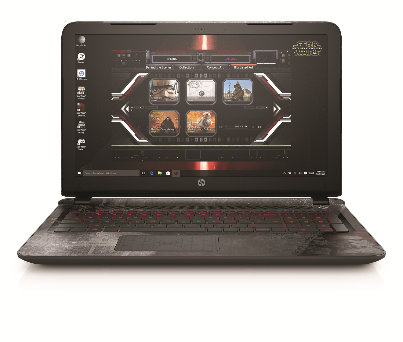 Lấy cảm hứng từ tập phim mới Star Wars: Thần lực thức tỉnh, mẫu máy tính xách tay này là sản phẩm hợp tác giữa HP, Disney và Lucasfilm. Người dùng dễ dàng nhận ra dấu ấn thiên hà ngay trên nắp máy, bề mặt bàn phím và bản lề.