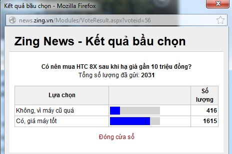 | Kết quả khảo sát mức độ hấp dẫn của chiếc HTC 8X trên Zing.vn. |
