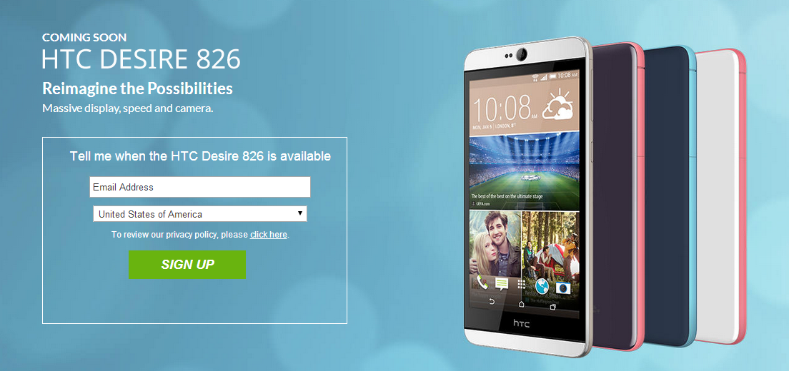 | Desire 826 đang được giới thiệu trên website chính thức của HTC tại thị trường Mỹ. |
