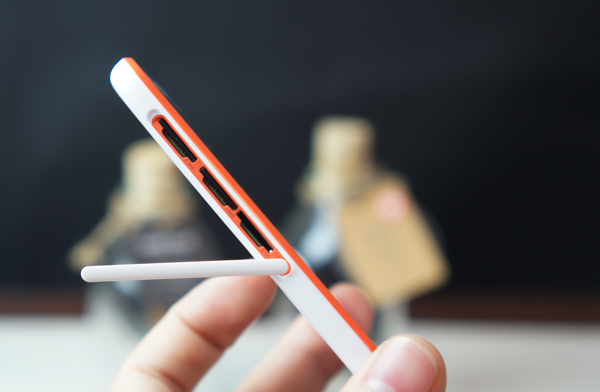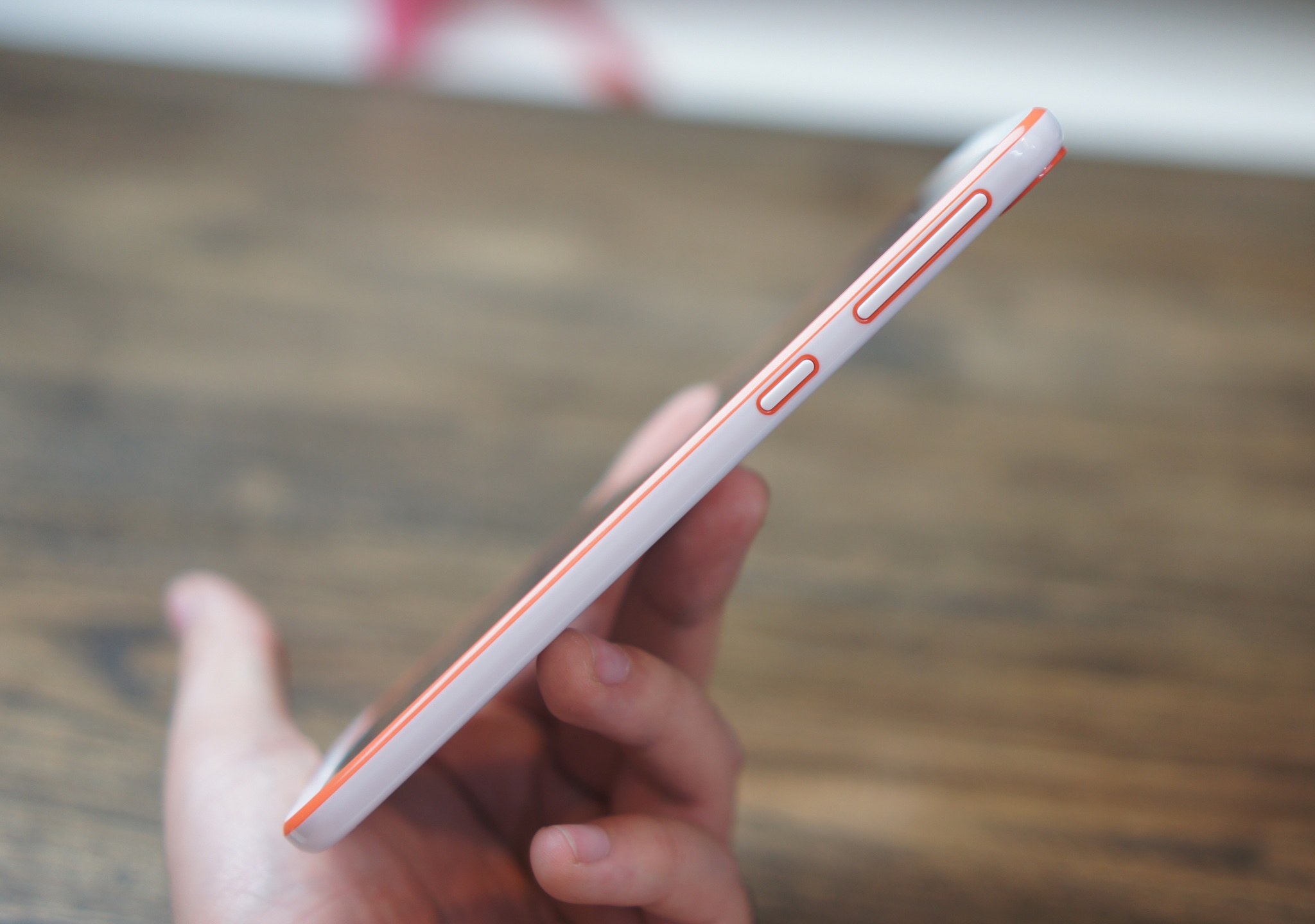 | Phần viền nút nguồn và tăng giảm âm lượng của máy cũng được tô màu cam. Cá nhân người viết không thích điểm này bởi nó tạo cảm giác rối mắt, mất đi tính hài hòa trong việc phối màu. |