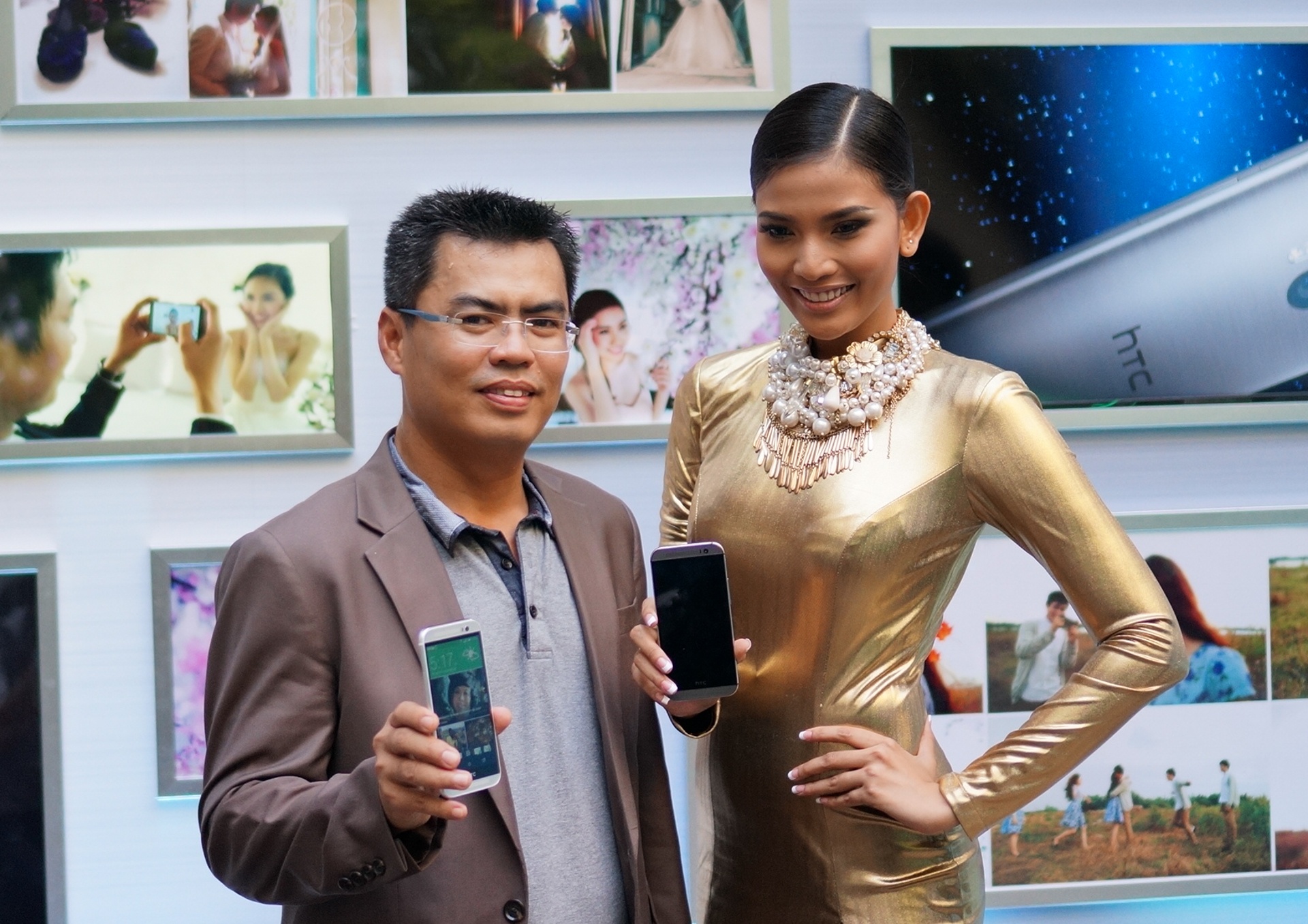 | Ông Nguyễn Hồng Châu, Trưởng đại diện HTC tại Việt Nam và Á hậu Trương Thị May tại sự kiện. |
