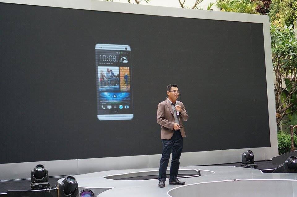 Lễ công bố One M8 diễn ra trong khuôn viên một khách sạn lớn tại trung tâm TP.HCM. Ngoài giới truyền thông, hãng mày còn mời đến nhiều nhân vật trong làng giải trí.