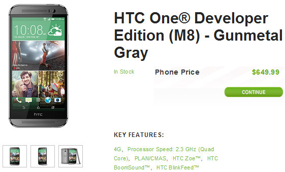 | Hình ảnh chính thức cũng như giá bản của HTC One M8 phiên bản dành cho nhà phát triển. |
