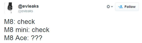 Tin đồn xoay quanh One M8 tiếp tục xuất hiện dù chiếc điện thoại này vừa được ra mắt. Tài khoản @evleaks vừa đưa thông tin úp mở về sự tồn tại của One M8 mini.