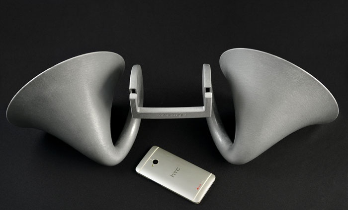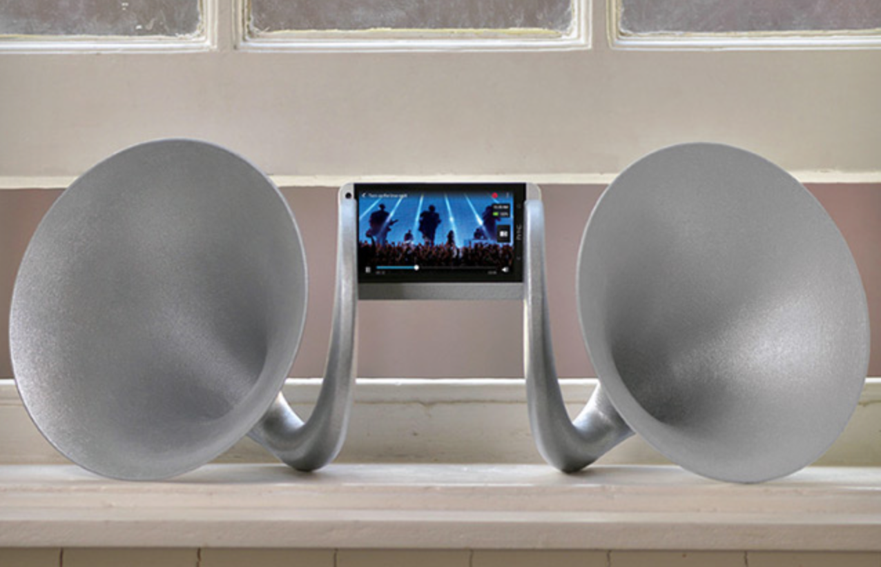 HTC có thể đang gặp hàng loạt khó khăn trong việc kinh doanh của mình, nhưng điều đó không ngăn được độ "chịu chơi" của hãng. Bằng chứng là mới đây, hãng đã mời nhà thiết kế Justin Wolter về để tạo nên Gramohom II - một chiếc dock loa có giá lên tới 8.000 USD dành cho HTC One - một trong số các smartphone cao cấp bậc nhất của hãng hiện nay. Một điểm đặc biệt nữa của chiếc loa này là nó được sản xuất bằng công nghệ in 3D.