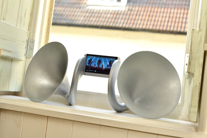 Như chúng ta có thể thấy, thiết kế của Gramohorn II trông giống với những chiếc máy hát cổ điển. Dock Gramohorn II trông rất dị thường với cặp loa to giống như trên các máy hát cổ, và một trục nhỏ ở giữa chúng giúp giữ chiếc One cố định. Cặp loa này không dùng bất kì thiết bị điện tử nào, mà đơn giản chỉ kết nối với dải loa BoomSound trên HTC One từ đó giúp cho âm thanh sẽ được khuyếch đại. Dock loa này sẽ giúp tăng âm lượng lên 50% mà vẫn giữ nguyên chất lượng âm thanh. Nó cũng làm tăng bass và các tone tần số thấp và tạo ra trải nghiệm âm nhạc sâu sắc hơn và hay hơn cho người nghe.