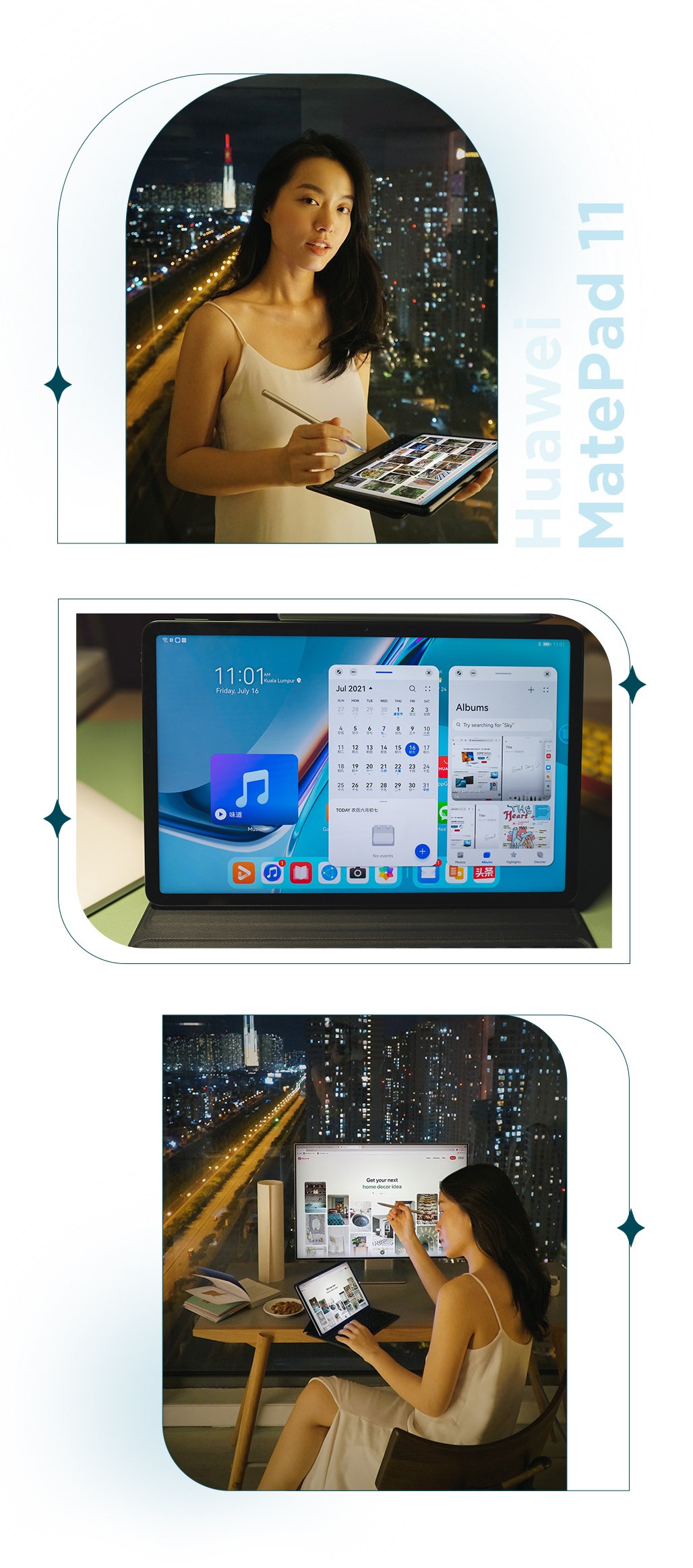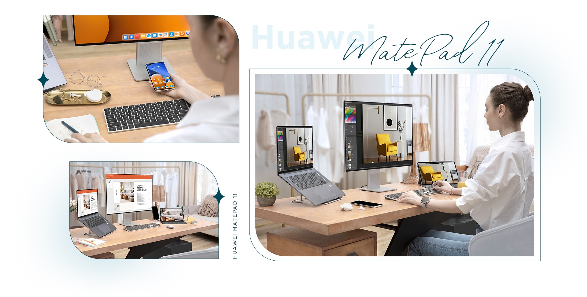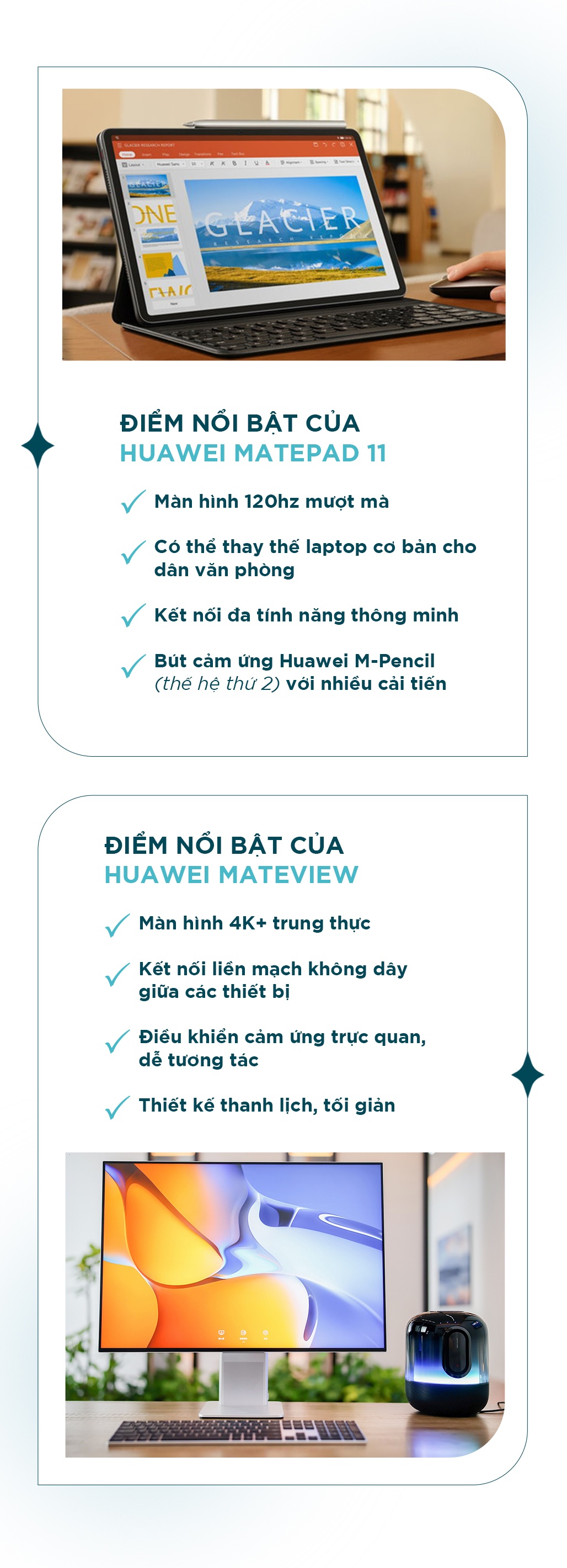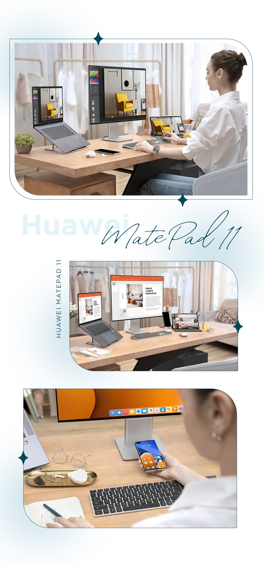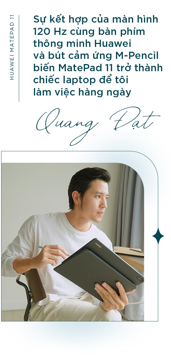 “Huawei MatePad 11 có thiết kế sang trọng, gọn gàng, tạo nhiều cảm hứng khi làm việc tại nhà. Không những thế, sự kết hợp của màn hình 120 Hz, cùng bàn phím thông minh Huawei và bút cảm ứng M-Pencil biến MatePad 11 trở thành chiếc laptop để mình làm việc hàng ngày”, Quang Đạt, cơ trưởng trẻ tuổi, chia sẻ về MatePad 11.