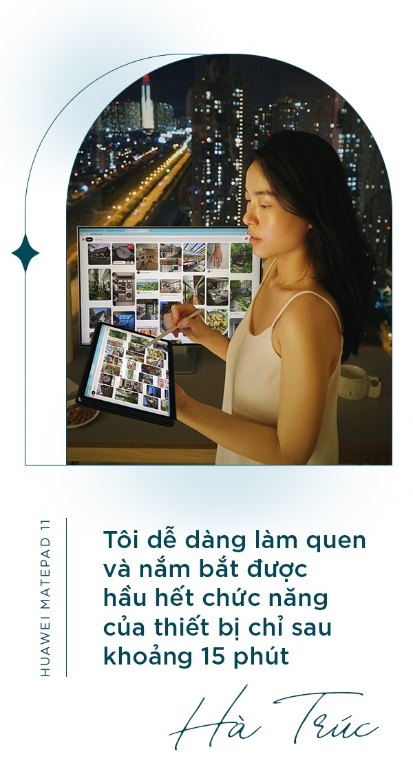 Hà Trúc, nữ blogger nổi tiếng, cũng có trải nghiệm giống tôi trong lần đầu sử dụng MatePad 11. “Tôi dễ dàng làm quen và nắm bắt được hầu hết chức năng của thiết bị chỉ sau khoảng 15 phút. Những thao tác điều hướng, đa nhiệm, mở cài đặt nhanh và thông báo tương tự các sản phẩm khác mà tôi từng sử dụng trước đây”, Hà Trúc cho hay.