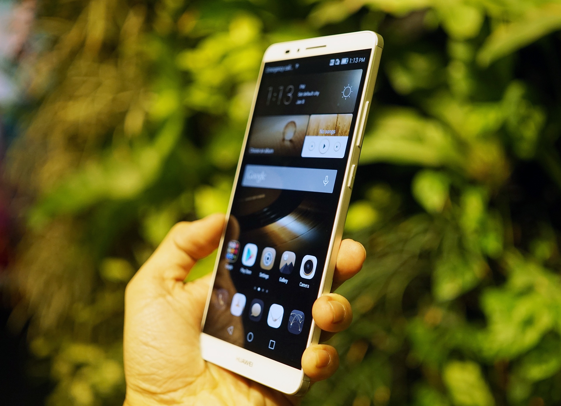 | Mate 7 có mặt trước gợi nhớ đến mẫu Desire 816 của HTC nhưng viền màn hình mỏng hơn. Trên model này, Huawei cũng mang đến một giao diện tùy biến trông khá lạ mắt. |