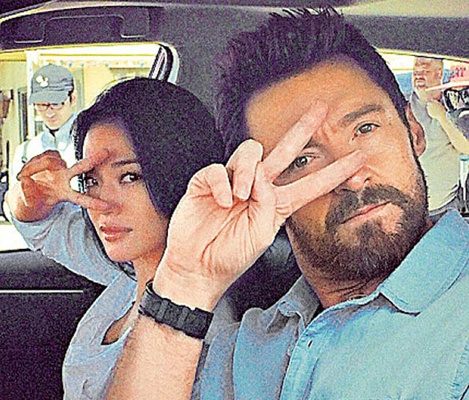 | Hugh Jackman và Thư Kỳ thân thiết ngoài đời thường. |