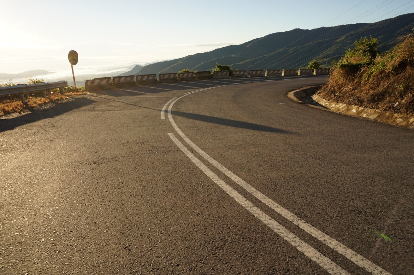 | Ánh sáng mặt trời chưa lên cao, con đường đèo đẹp khó tả. |