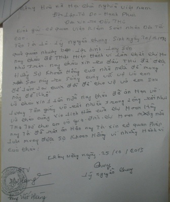 | Đơn xin tự thú của Lý Nguyễn Chung. |