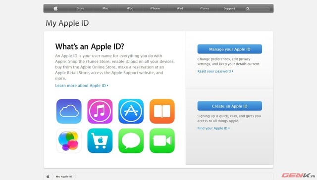 Bước 1: Chọn mục quản lý Apple ID, đăng nhập và điền các thông tin cần thiết.