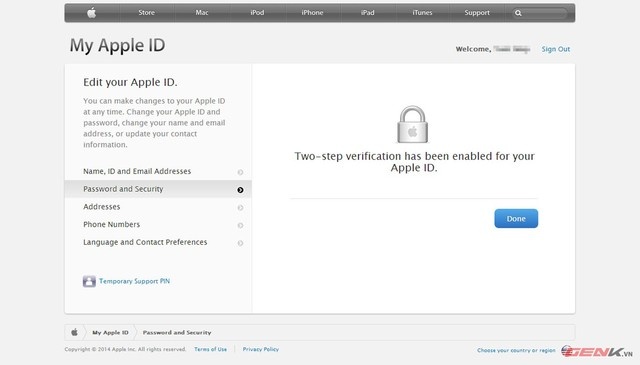 Sau khi ấn chọn "Done", chức năng bảo mật 2 lớp dành cho tài khoản của bạn đã được bật, đồng thời bạn cũng có thể đổi lại mật khẩu và cũng chẳng lo bị mất nữa vì đã bật chức năng bảo mật 2 lớp. Ngoài ra, bạn cũng nên kiểm tra lại các thiết bị có trong danh sách tin tưởng để thêm, hoặc xóa bớt thiết bị không cần thiết.